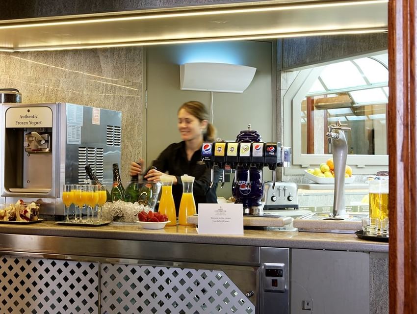 En nuestro buffet, encontrara infusiones para el desayuno y también para relajarse: Te, Manzanilla, Tila, Menta.