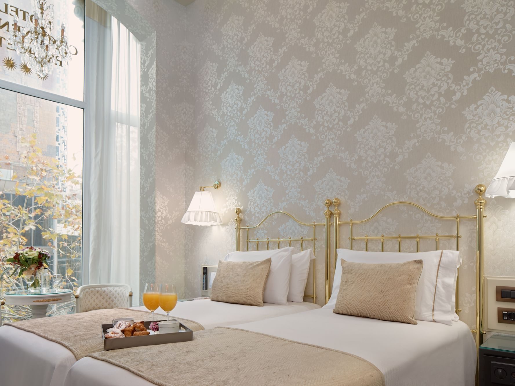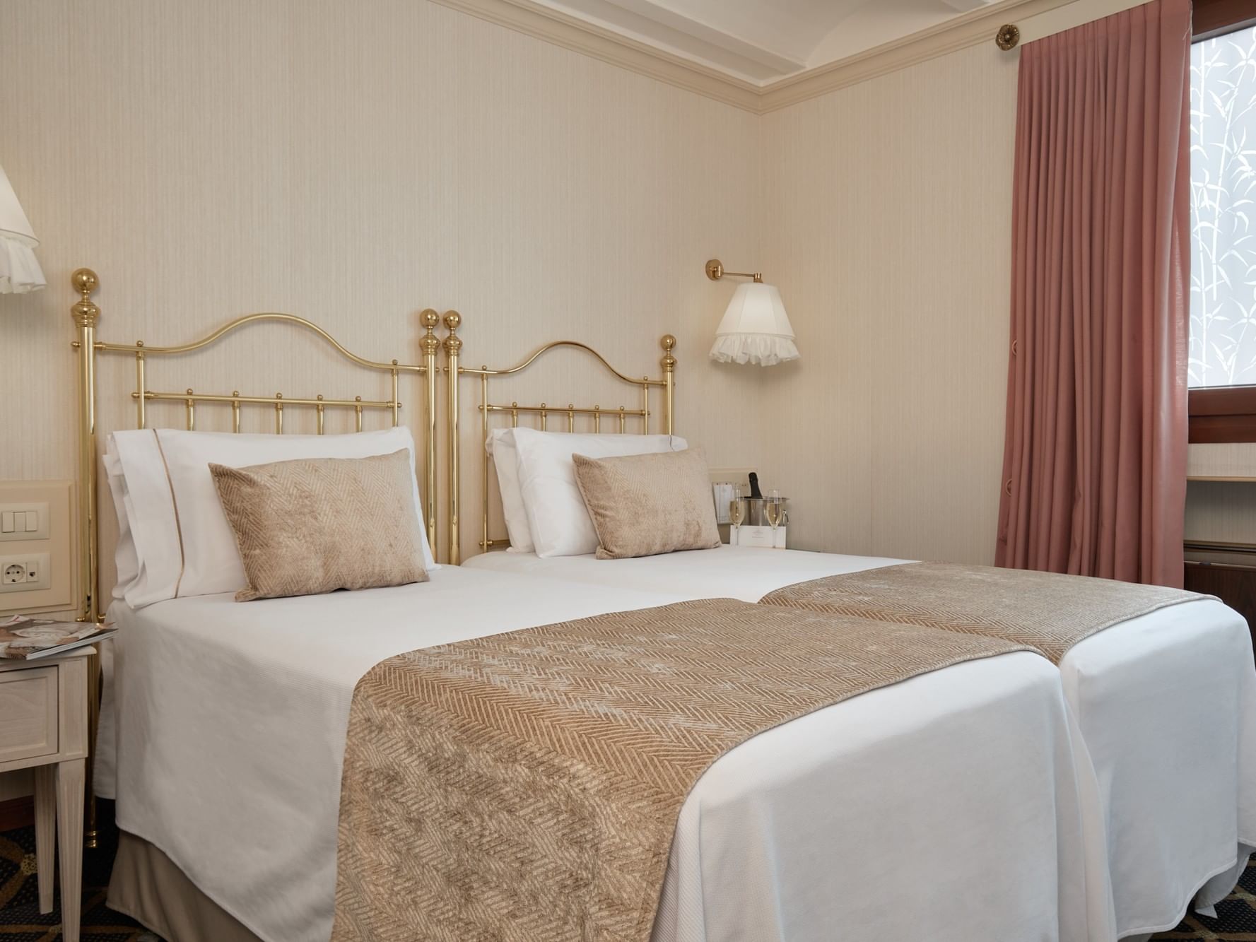 Habitaciones Confort, totalmente insonorizadas. Tamaño de 14 a 18 m². Orientadas al interior, cuentan con una ventana o un pequeño patio. Habitación doble con cama queen size o dos camas individuales y con un moderno cuarto de baño completamente equipado.
